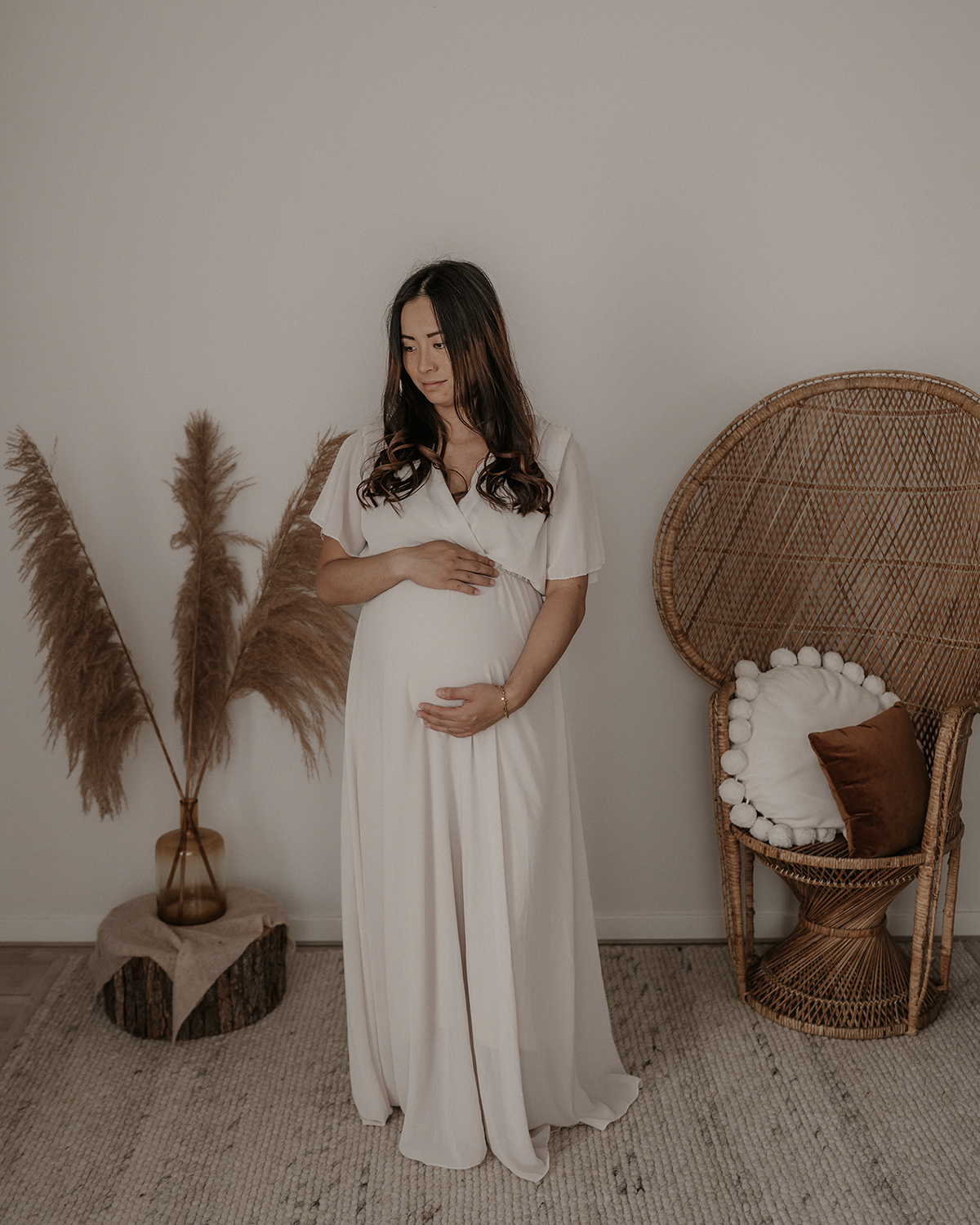 Zwangere vrouw op de foto is 1.55 en heeft maat S