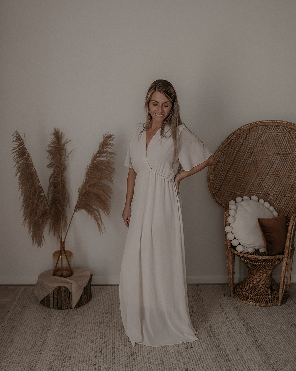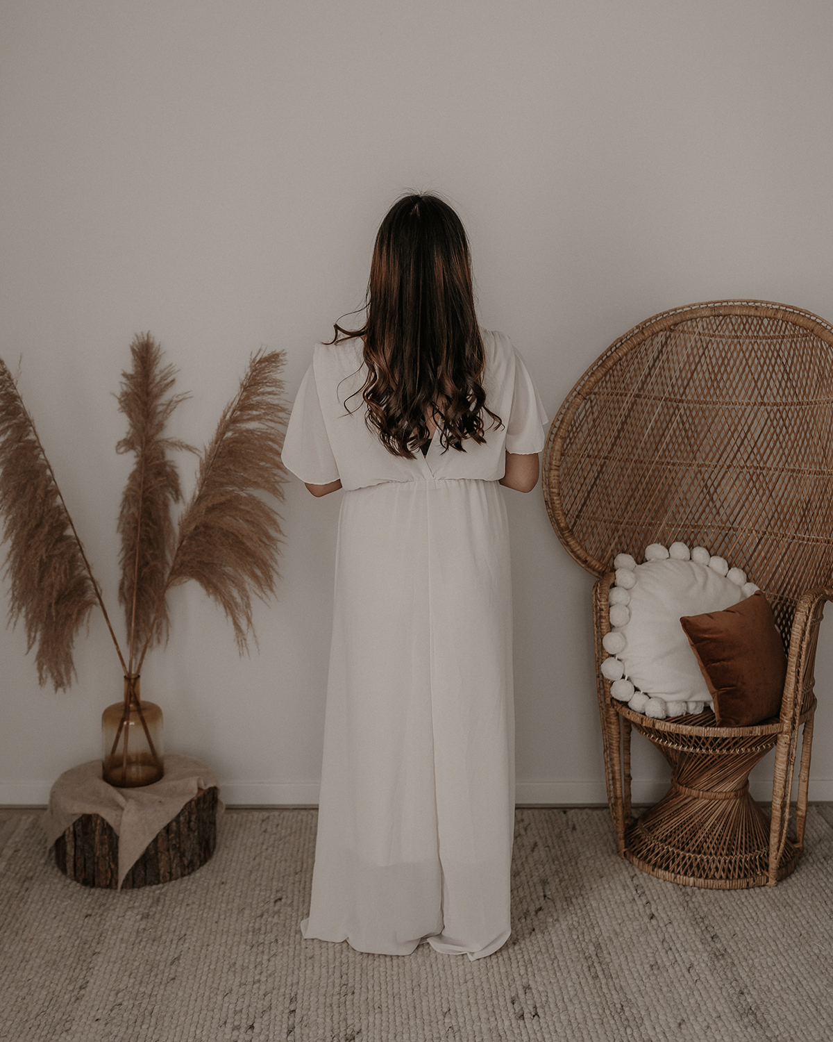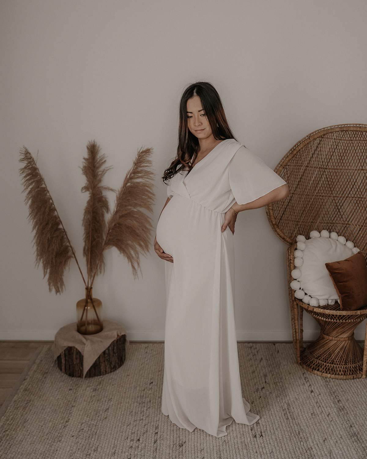 Echt een prachtige jurk die beschikbaar is in twee kleuren. Hij is perfect om als gast naar een bruiloft te dragen. Maar ook heel mooi voor tijdens een fotoshoot of om gewoon te dragen. De maat is one size en te dragen van maat XS t/m een kleine L. Hij is zowel zwanger als niet zwanger te dragen. Er zit een onderjurk in de jurk deze komt tot ongeveer de knie.