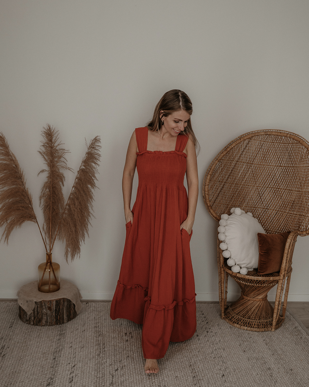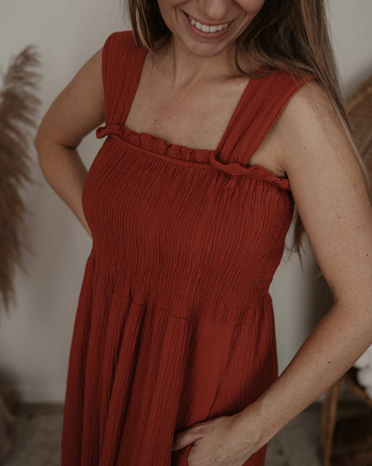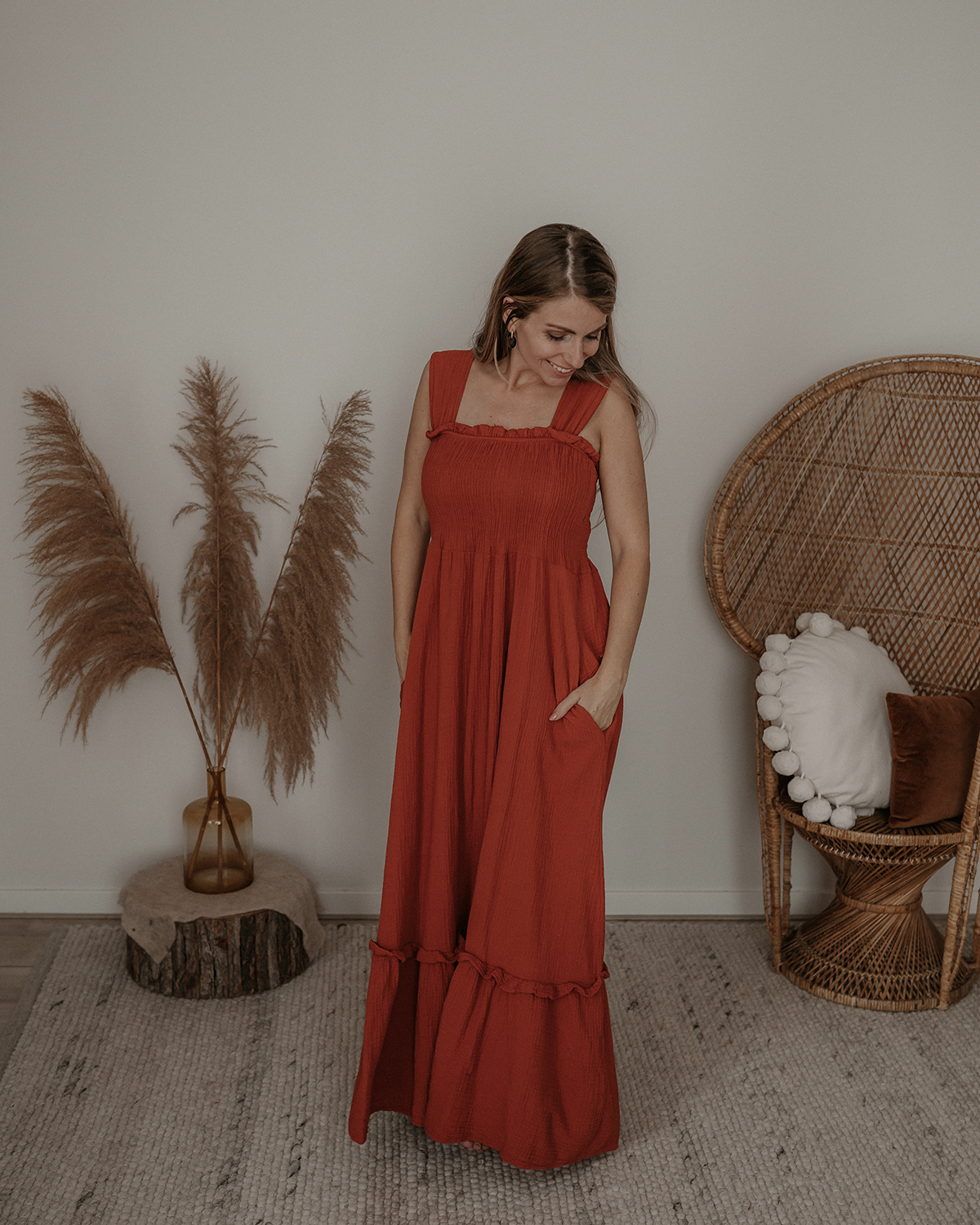 Deze prachtige lange jurk is gemaakt van zachte mousseline stof en zit heerlijk luchtig en comfortabel. Echt zo’n jurk die je elke dag wel wilt dragen! Dankzij de flatterende pasvorm en handige zakken is hij niet alleen mooi, maar ook praktisch.
